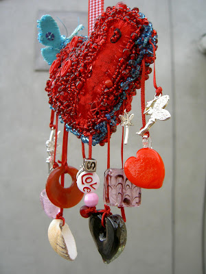 treasures. I decided I wanted to encrust this felt heart with beads, buttons